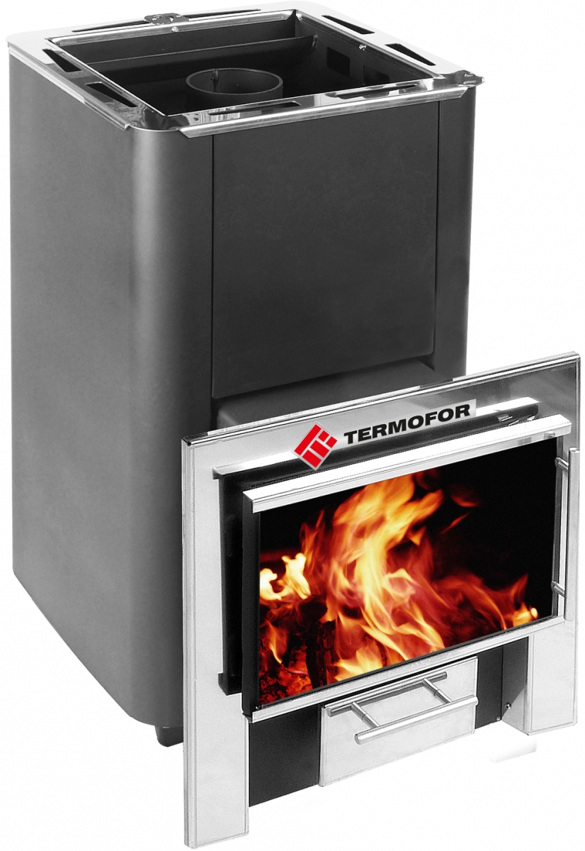 - Удобство топки: выносной топливный канал позволяет загружать дрова из смежного помещения, не заходя в парилку.