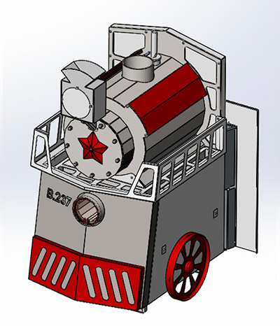 Комплектация: печь‑каменка «Паровоз 9‑14 Плазма» с выносным топливным каналом, паровозным свистком, «паровозной фарой», выдвижным зольником и заливной горловиной с обратным клапаном.