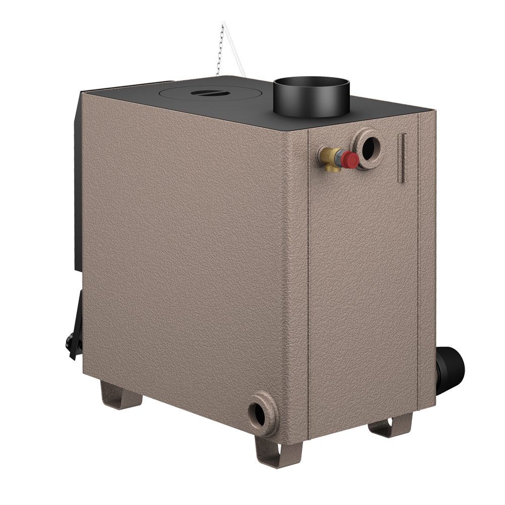 Одноконтурный котел с площадью отопления до 80 м². Сверху расположена варочная плита.